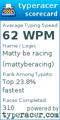 You can place this image anywhere on the web (your blog or Facebook, for example). It will update automatically with your new score each time you complete another race.